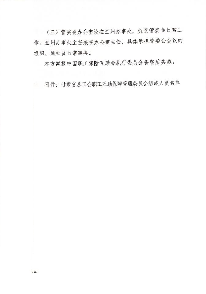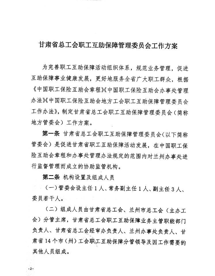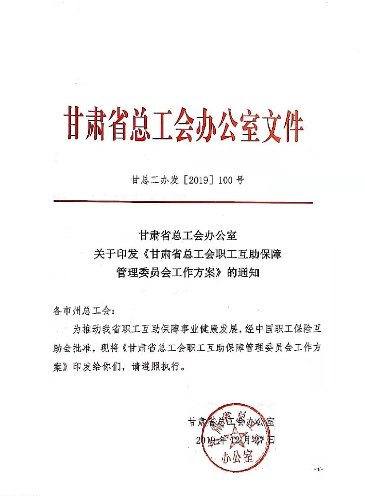 甘肃省总工会办公室关于印发《甘肃省总工会职工互助保障管理委员会工作方案》的通知