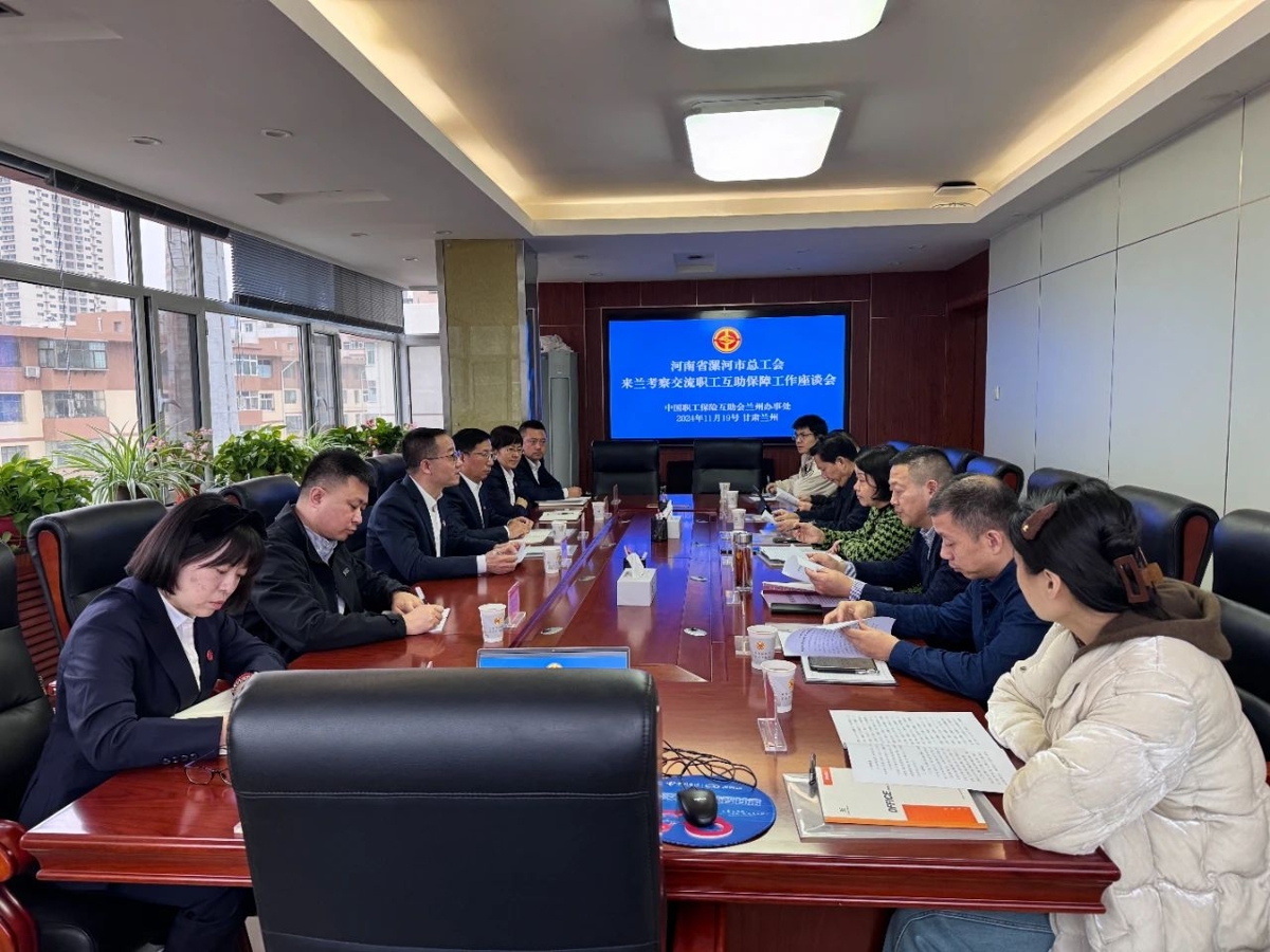 11月19日,漯河市总工会党组成员、副主席巩颖超、张炜一行7人到中国职工保险互助会兰州办事处考察交流职工互助保障工作。兰州办事处主任田定强及办事处相关负责人参加了座谈交流。