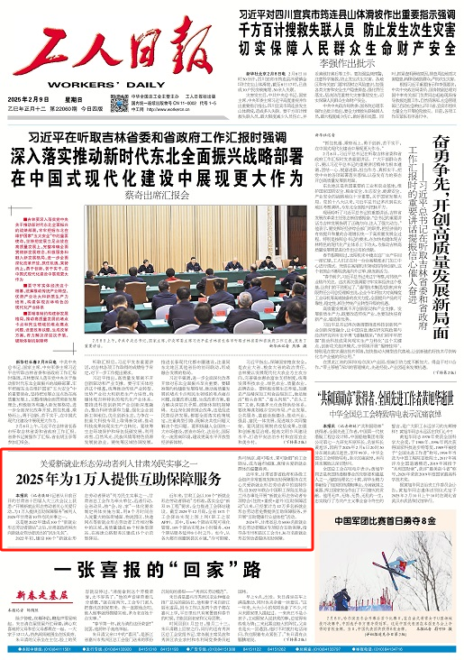 本报讯(记者康劲)记者从日前召开的甘肃省十四届人大三次会议上获悉:“开展新就业形态劳动者关心关爱行动,为1万人提供互助保障服务”被列入2025年甘肃省10件为民实事之一。