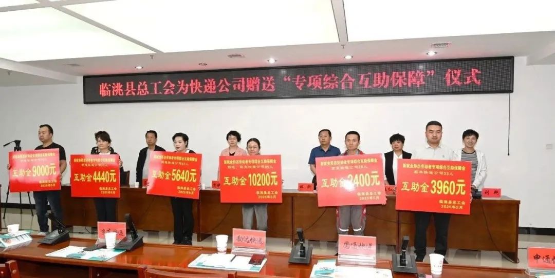 仪式上,县总工会为中通、圆通等6家快递公司的297名快递员送上总额35640元的“住院+意外+重疾”专项综合互助保障,精准对接快递员工作中高频面临的健康与安全风险。这既是对快递员群体辛勤付出的致敬,更是工会服务向“精准化、常态化”延伸的重要实践。