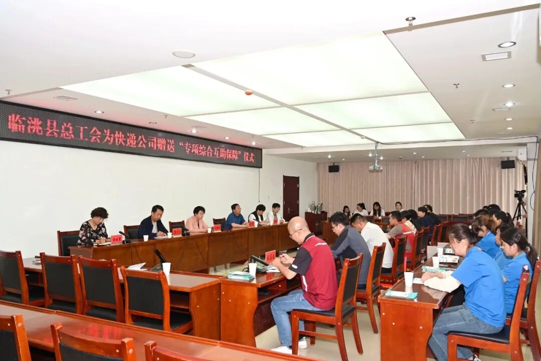 5月23日,临洮县总工会举行仪式,为快递公司赠送“新就业形态劳动者专项综合互助保障”。县人大常委会副主任、县总工会主席刘映菊出席并讲话。