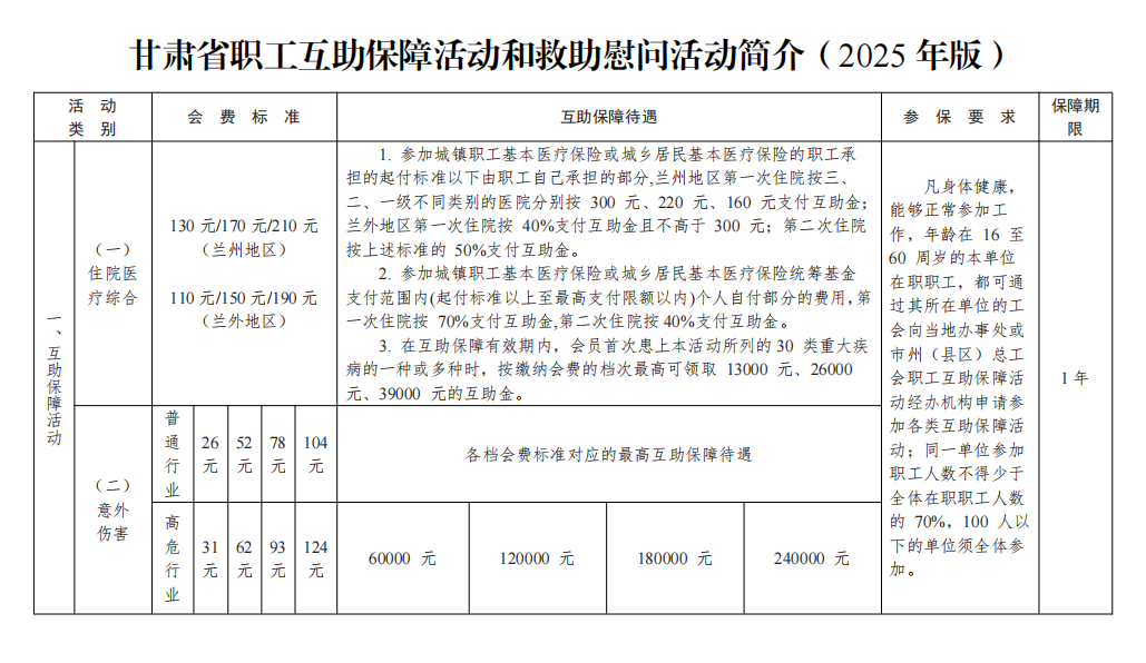 甘肃省职工互助保障活动和救助慰问活动一览表(2025年版)