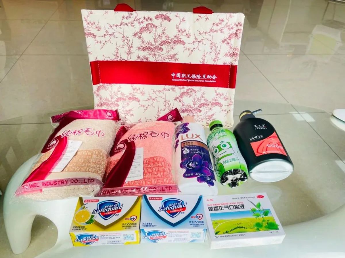 “工会真是太贴心了,关爱包里不仅有实用的日用品,还有防暑的降温的饮料和药品,我们拿在手里,暖在心中!”快递员蔡小兵开心地说道。